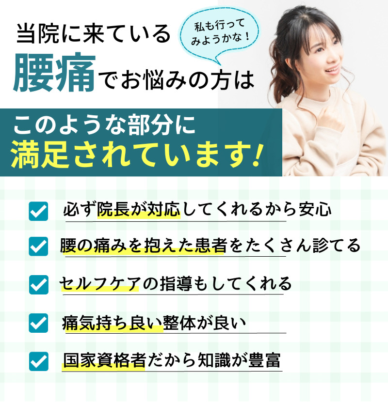 親しみやすい先生で、完全予約制で待たずに施術してもらえるのも嬉しいです。