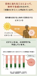 ビタミンDは太陽のビタミンと言われるように紫外線を浴びることで体内である程度生成されます。
