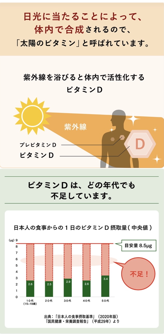 日光や食事だけでは補えない場合は、サプリメントなんかも活用するといいでしょう!