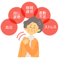 「同じ姿勢」「眼精疲労」は長時間のパソコンやスマホ、細かい手仕事などが原因になります。